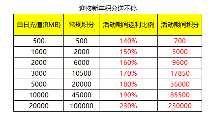 如单日充值700RMB, 700活动档位积分+200自然积分总和900积分,可对应积分换取道具,道具用户自由组合)